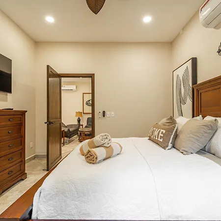 Luxury Playacar Villa 2 Min Walk To Beach는 편안한 시간을 보내기 위한 책상, 책상, 커피 및 티 메이커가 마련돤 객실을 제공합니다.